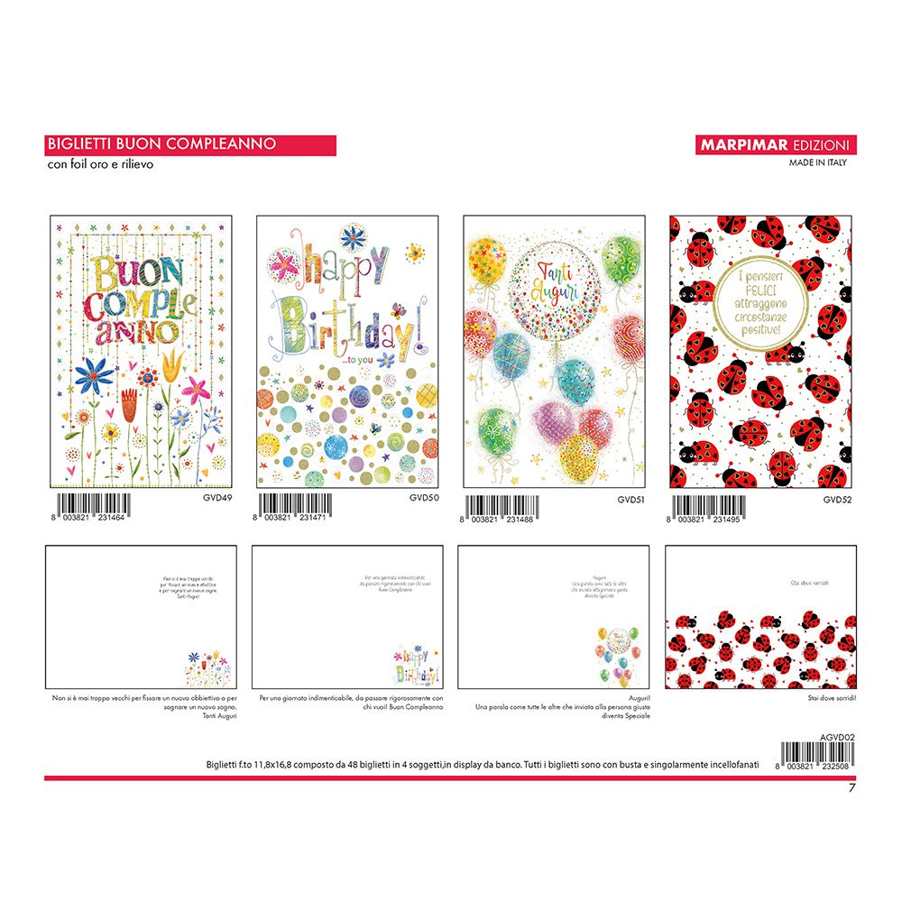 BIGLIETTI BUON COMPLEANNO FOIL ORO + RILIEVO x 12 Pz. ART. AGVD02 [MARPIMAR102]